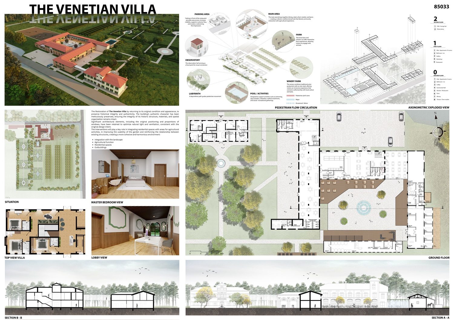 Die Eingriffe verstehen sich als sanfte Weiterentwicklung des Bestands. Wohnnutzungen werden mit landwirtschaftlichen Funktionen verbunden, der Garten aufgewertet und die Beziehung zwischen den Gebäuden gestärkt. So entsteht ein harmonisches Ensemble aus Architektur, Landschaft und Nutzung.